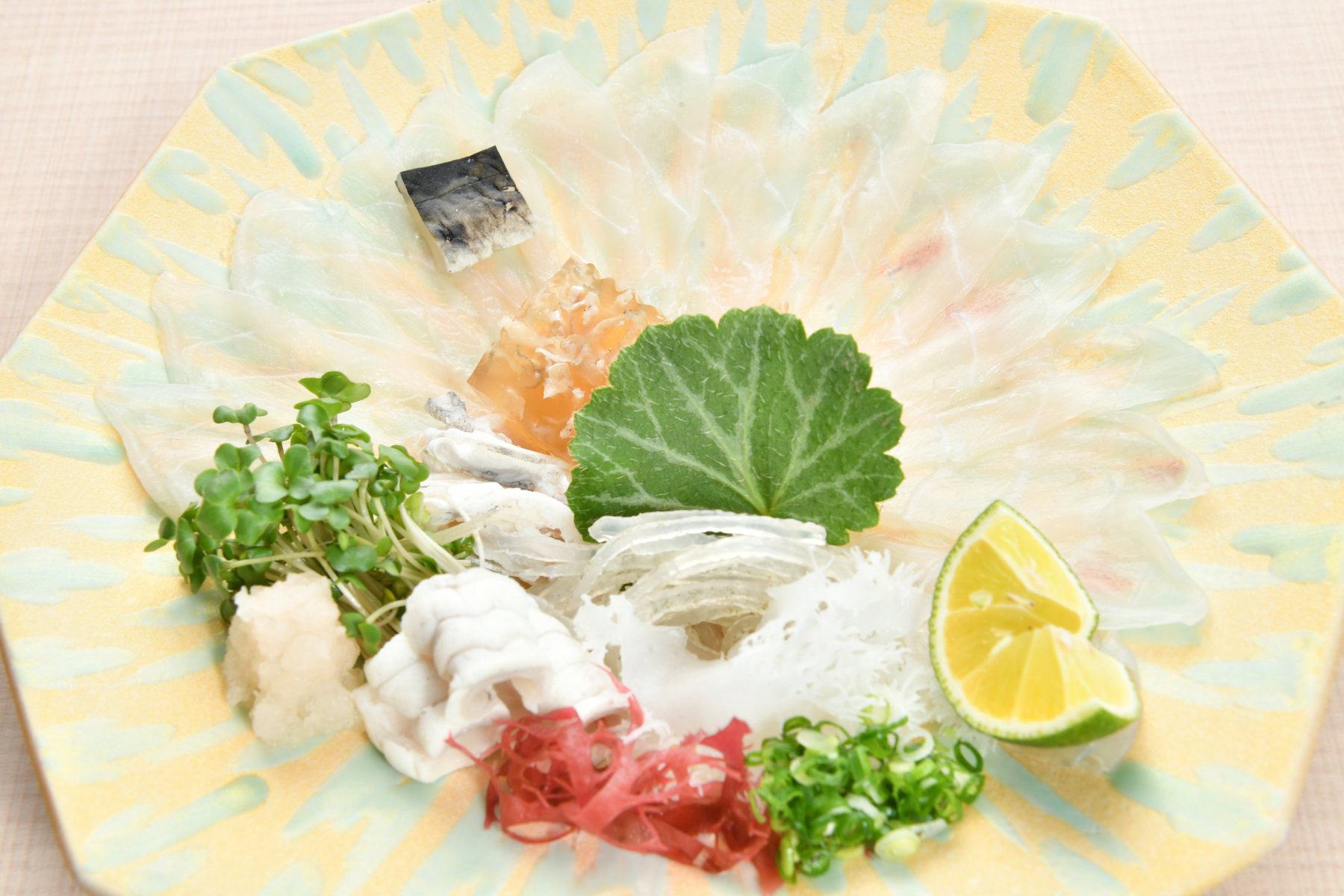 箸付 | 前菜 | 吸物 | 造里 | 天ぷら | 生野菜 | 留椀 | 御飯 | 香の物 | 水菓子