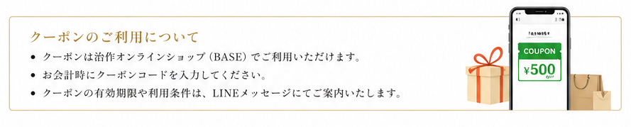 👉 クーポンはオンラインショップ(BASE)にてご利用いただけます