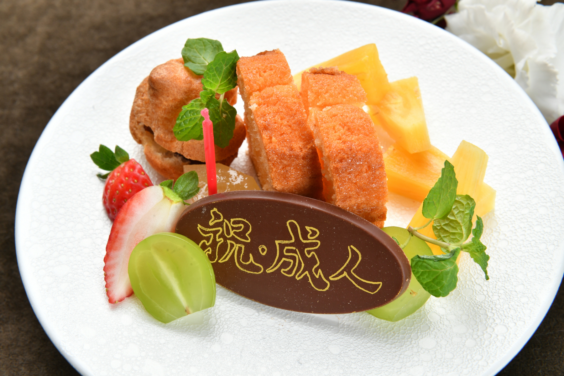为您准备了时令怀石料理和适合庆祝场合的喜庆菜肴。为了庆祝您迈入成人行列,我们还为您准备了鲷鱼头和干杯饮料。尽情庆祝您迈向成人的第一步吧。