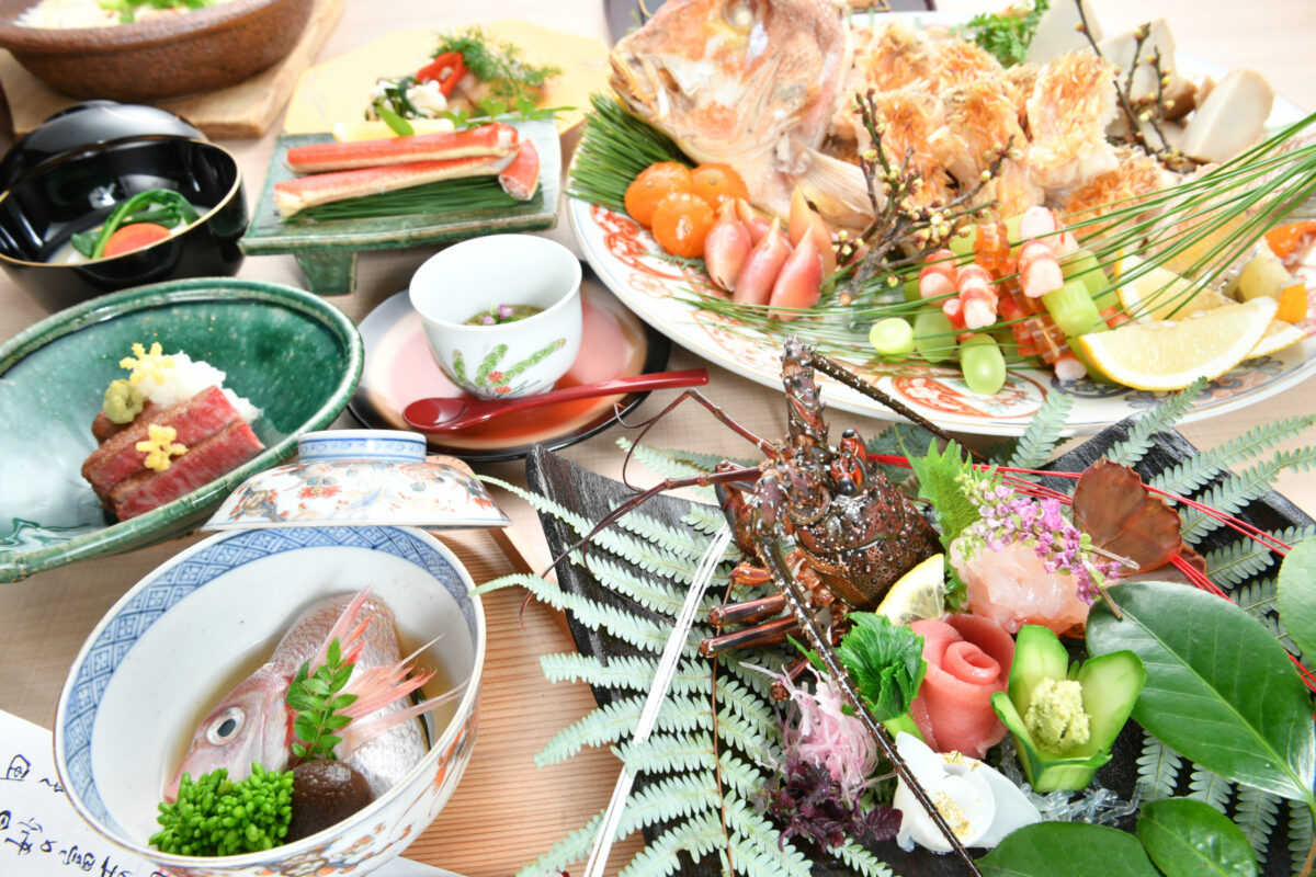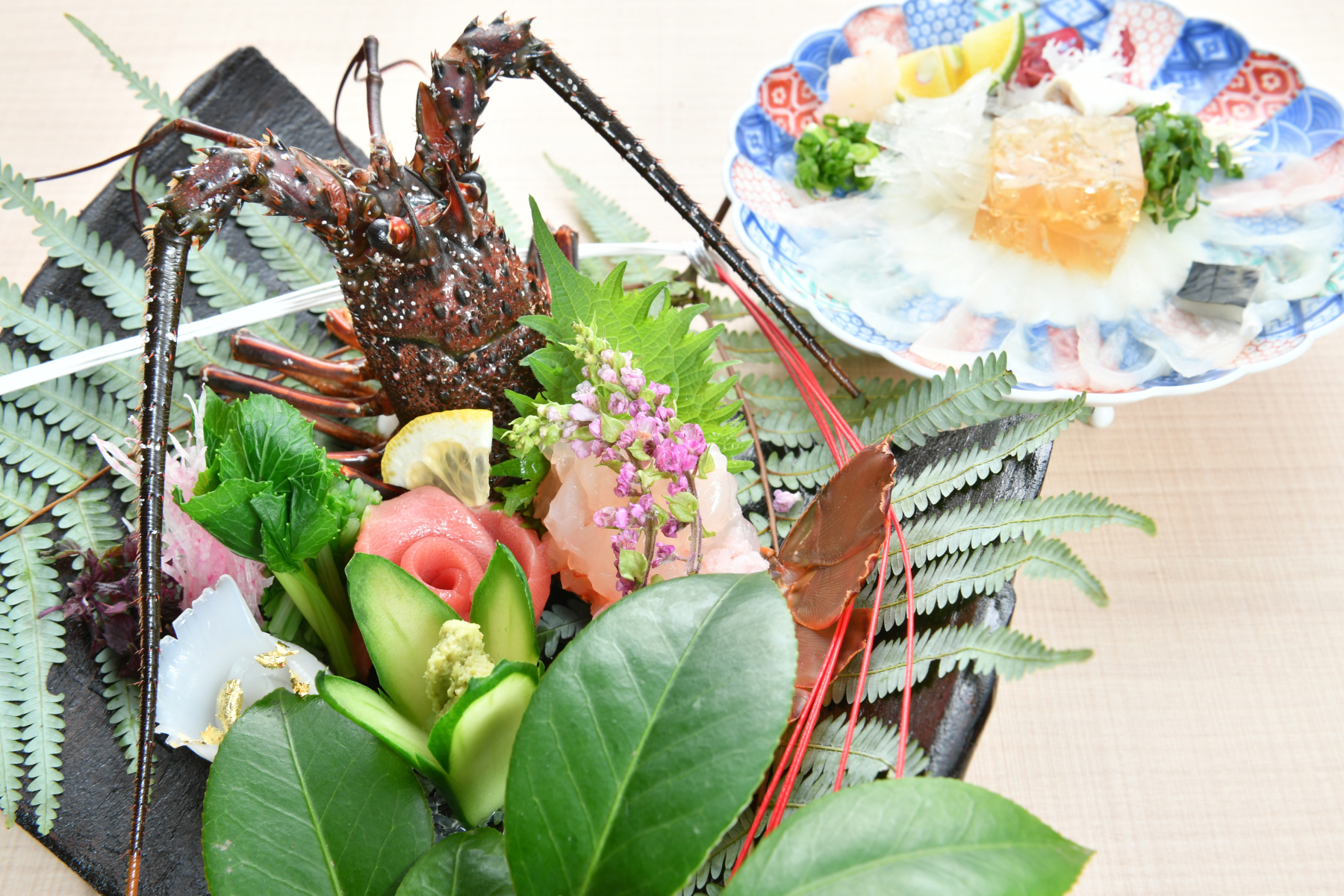 伊勢海老を丸々お造里に(禁漁期間を除く)、厳選された旬の食材をふんだんに、お祝いの席に相応しい食材、料理をコースでご用意いたします。