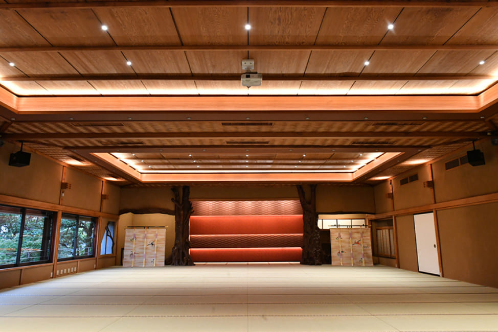 You can view the spacious Japanese garden, its beauty changing with each season, with a large pond where beautiful colored carp swim, as you enter the traditional Japanese structure, taking off your shoes as you would do in a Japanese home.